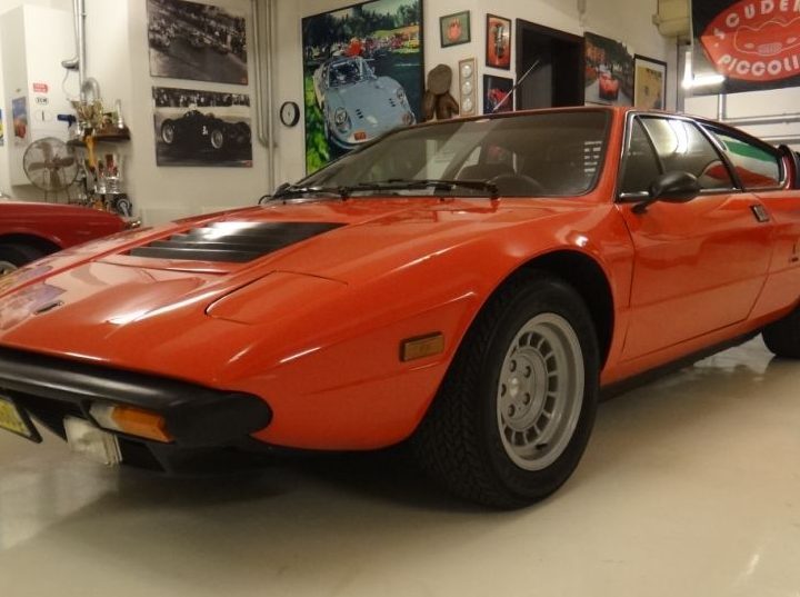 This 1976 Lamborghini Urraco P200 features its original 2.0 liter V8 engine with quad Weber carbs and is one of just 66 produced for the Italian market. This 37k kilometer (~23k mile) example was imported from Holland a few years ago by its previous owner, and recently received a thorough mechanical refresh in Greece by BaT regular Alex V. The engine was removed and overhauled, Webers were rebuilt, and the cooling system was renewed. The orange exterior is an older repaint that still looks glossy, and the original black interior is well-preserved. Described as well sorted and ready to drive immediately with strong engine compression, the car has FIVA A3 certification and comes with full photo documentation of the mechanical restoration. The car was repainted on the exterior only, and all inside surfaces are original according to the seller. Paint is showing some signs of age, the most notable blemishes bring a series of small chips on the front edge of the driver’s door and a scratch on the driver’s black Vitaloni side mirror. Detailed images of these areas can be seen in the photo gallery below. Early ownership history is unknown, but the seller notes a sticker on the driver’s door that shows Mohammed Khaled as an owner in 1978. It is unclear if he was the original owner, though he is a known Lamborghini collector from that period. The body is in good shape with a few small dents from normal use reported by the seller. The black louvers covering windows and intake vents are in good condition and contrast nicely with the orange exterior. The Gandini-designed shape features angular body panels reminiscent of the Countach, but was a more affordable option than its V12 sibling. The Urraco competed for sales with other entry-level exotics, and just under 800 were produced over 6 years of production. In addition to the engine work, the entire Girling braking system was serviced with new ventilated discs, and brake lines installed all around. The original 14″ magnesium Campagnolo wheels have been refurbished and wear Pirelli P7F tires. Exterior rubber, black trim, badging, and lights are in good condition. The original glass is clear and crack free. Larger federally mandated bumpers fit surprisingly well with the shape of the car, and twin stainless dual-exhaust tips protrude from under the bumper. The black 2+2 interior contains tiny rear seats and is believed entirely original apart from a period Pioneer cassette deck. The cabin looks sharp and is only missing the sun visors. Vinyl surfaces and interior plastics appear well-cared for with a smooth dashtop and no apparent UV damage. A white dash panel around the Jaeger gauge cluster highlights the instruments and warning lights, all of which are said to function with the exception of the clock radio. Both power windows work, though the passenger side window only goes half way down as something is believed to be blocking the mechanism inside the door panel. Leather and cloth upholstery on the seats and doors is in good condition and shows light wear for the its age. Original black carpeting looks clean and taut. The mid-mounted aluminum V8 engine was overhauled less than 600 miles ago. This reduced-bore 1995cc version was based on the 2.5 liter V8 and made 182 horsepower when new. It was built exclusively for the Italian market and was designed to avoid taxes on cars with engines displacing more than 2.0 liters. The engine-out job included the replacing of the timing belts, head gaskets, and gearbox syncros. The heads were cleaned and checked, and all four of the dual-throat Weber carbs were fully rebuilt. Several shots of the engine overhaul can be found in the gallery below. The cooling system was refurbished with the addition of modern high performance cooling fans, a new radiator, and a dual circuit for the fans. The car was serviced in preparation for the sale with all new fluids and plugs, rebuild of the distributor, and a new battery. Compression is 150 psi on all 8 cylinders, which is said to be close to upper limit for this low compression (8.7:1) engine. The underside looks clean, and is said to be all original with no cuts or welds. Full photographic records of the recent mechanical restoration have been provided by the seller.