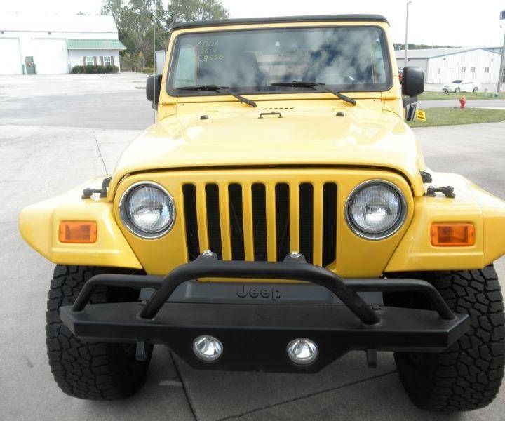 2 door convertible sport utility vehicle, solar yellow clear coat exterior, dark slate gray interior, black convertible top, black bimini convertible top, full frame doors with roll up windows, Dick Capek 16 inch (not stock 15 inch) aluminum and black wheels and hubcaps, Falken dpeak 16 inch (not stock 15 inch) LT305/70R16 all terrain black wall radial tires, Power Tech 4.0 liter 242 cu in 190 hp 6 cylinder engine, NSG370 6 speed manual transmission with 2 overdrive gears with floor shift in center console, Command Trac 4 wheel drive with high range and low range with floor shift in center console, 3.73 (not stock 3.07) rear axle ratio, Trac Loc limited slip rear differential, original engine, original transmission, original rear differential housing, original paint, original interior, Mopar factory replacement convertible top and windows replaced 2018 (cost $2362), X trim level, air conditioning, power steering, power brakes, custom audio system, compatable with i e ipod pandora seriusxm Bluetooth bassenginesq parametriceq, AM/FM stereo radio, compact disc player with 2 Kicker speakers mounted in roll bar in 2022 (cost $841), padded roll bar, aftermarket accessories include Jeep black steering wheel cover, padded seat belts, Wet Okole front and rear neoprene seat covers, audio system, Quadratec all weather front floor mats, op black bimini convertible top, Dick Capek custom wheels, Pro Comp custom front and rear 4 inch suspension lift, roe custom white front and rear shocks, Xenon custom urethane fender flares with side marker lights painted solar yellow, custom black front and rear bumpers with 2 front driving lights, custom black front brush guard, custom black rear quick detachable storage rack, Rugged custom black plastic sill plates, Smittybuilt custom black tubular side steps, custom black plastic diamond plate rocker panels, 30 front axle and 35 rear axle, r custom stainless steel exhaust system, no rust on body floor frame, never off road or rock climbing, always stored in garage, 2 original keys, original owners manual, original jack 3 piece handle tire tool, custom black slotted steel spare wheel and original BF all terrain spare tire, receiver trailer hitch through rear bumper, medications and accessories cost over $12000, factory build sheet, service records from 2008 to 2023, Carfax Vehicle History port, fornia smog check vehicle inspection report, purchased new in fornia, always in fornia or waii, 30000 miles
